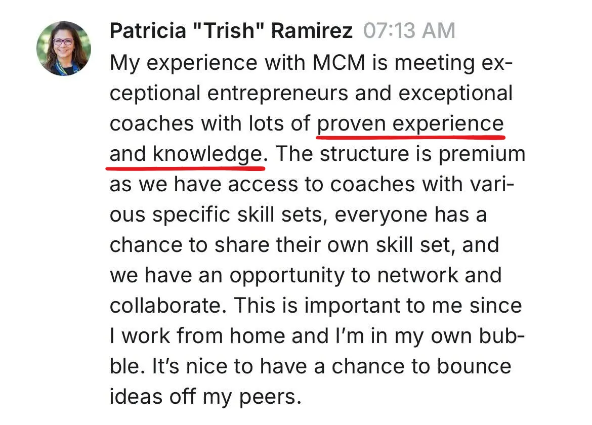 Inside MCM, you’ll get the coaching and support to grow your revenue