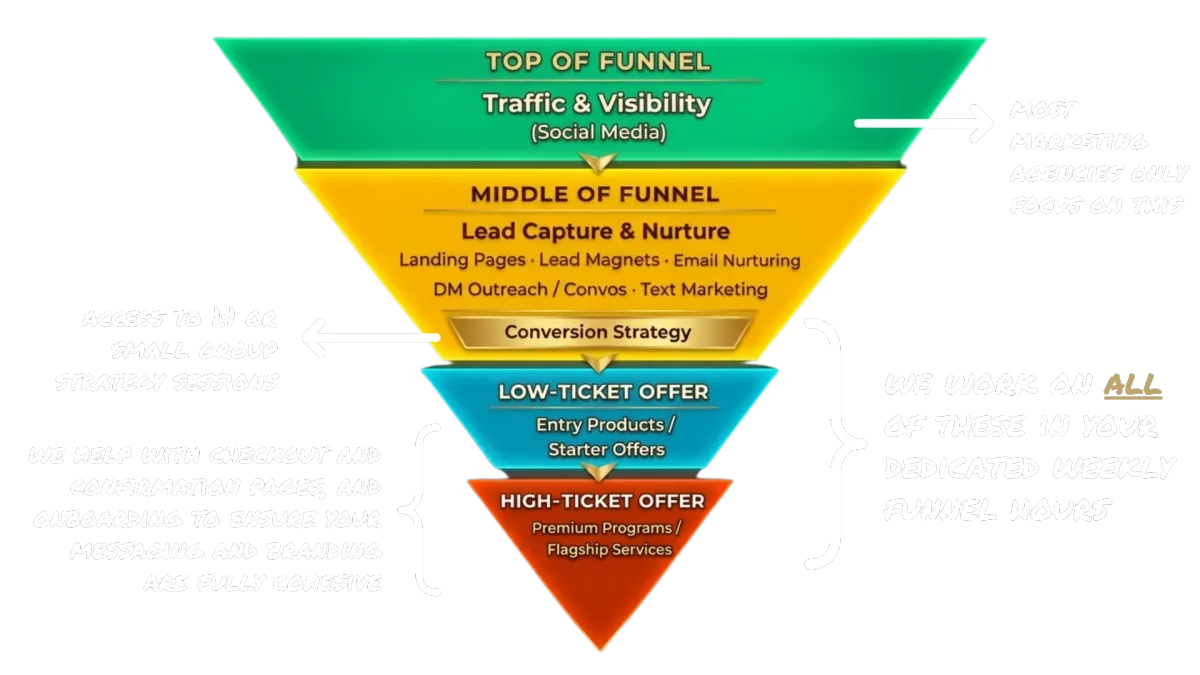 Strategic marketing and funnel retainers to attract, convert, and scale your audience with clarity and consistency.